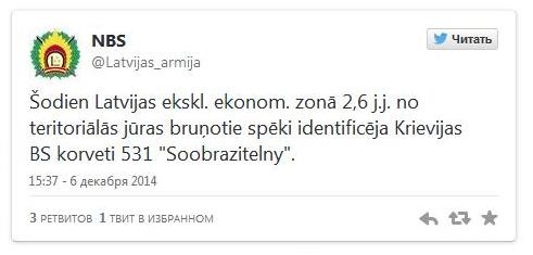 У Балтійському морі 6 грудня на відстані 2,6 миль від кордону Латвії помічений корабель військово-морського флоту Росії.